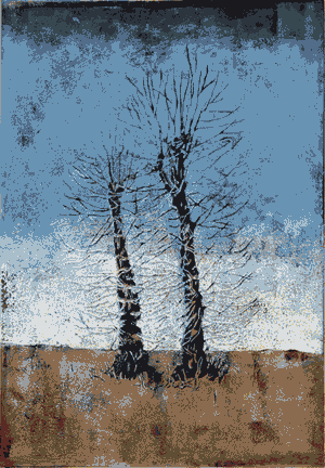 Two systems III (multiple linocut stamps, 2015, 100x77 cm)